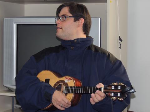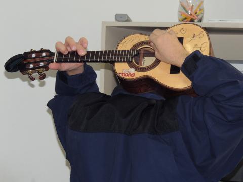 A relação de Eduardo Gontijo, 26, com os instrumentos musicais começou cedo. Logo aos quatro anos, participava de rodas de samba com a família e imitava os movimentos. Com tanta estímulo e prática, além do cavaquinho (o favorito), que origina o apelido “Dudu do Cavaco”, toca banjo, pandeiro, repique, surdo, ganzá, tamborim e djembê. Com tamanho conhecimento musical, nesta quinta-feira, 22, Eduardo se apresentou para as crianças do Ambulatório de Síndrome de Down do Complexo HC* da UFPR, que completou 20 anos de atividades neste ano.